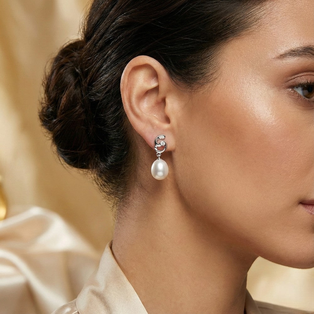 Απογειώστε το στυλ σας με αυτά τα εκλεπτυσμένα σκουλαρίκια, κατασκευασμένα από ασήμι 925 υψηλής ποιότητας. Διαθέτουν εντυπωσιακά μαργαριτάρια γλυκού νερού σε σχήμα σταγόνας, με διάμετρο 7.5-8mm, που προσδίδουν μια διαχρονική κομψότητα.