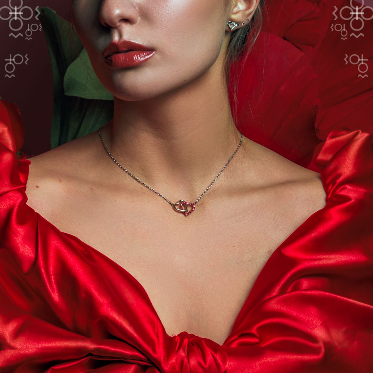 Κλασικό χειροποίητο κολιέ με κρύσταλλα Swarovski® σε Light Siam. Αστραφτερές καρδιές που κρέμονται μαζί και συμβολίζουν την λεπτότητα και την πίστη. Το μέγεθος του μενταγιόν είναι περίπου 2 x 2 cm.