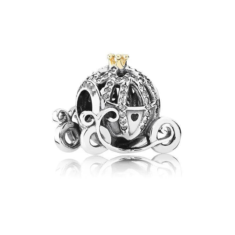 Charm σε σχήμα άμαξας, με λεπτομέρειες από λευκά κρύσταλλα και χρυσή κορώνα στο επάνω μέρος. Η σχεδίαση είναι τρισδιάστατη και δίνει ένα παραμυθένιο ύφος.